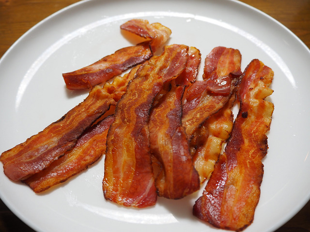 ホットケーキミックスを買ってきたのでホットケーキにしようと思っていたのですが、パンの籠をみるとたまき亭のクリームパンが残っていました。それじゃ、そっちの方が先だろう。仕方ないのでベーコン焼きました。カリカリ仕様です。目玉焼きを添えていただきます。この一つだけではあまり目立ちませんが、結構この黄身濃い色ているのですよ。今日、初めて気づいたのですがこの拘りはなに。