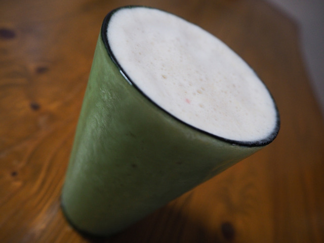 朝食前のミルクセーキ。休みの日は毎朝飲んでいます。ホットケーキは休日の定番です。後、カリカリベーコン。オムレツとコーヒーを付けます。