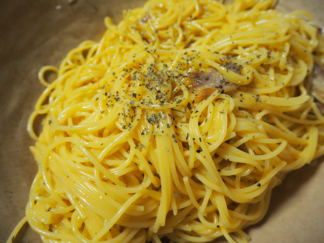 今回はかなりうまくカルボナーラが出来ました。卵が絡んでツヤツヤのピカピカですねぇ。(笑)下手をするとスクランブルパスタになっちゃうのよ。チキンと豆腐のサラダです。ゴマ油を効かせた醤油ドレッシングで頂きました