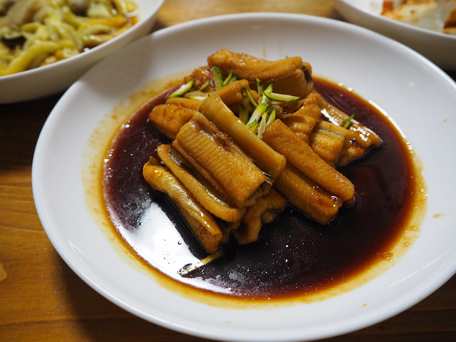 生の美味しそうな穴子が手に入ったので、煮付けてみました。最初に皮目にお湯をかけてぬめりを出して、包丁の背でぬめりを削ぎ落します。こうなれば、あとはどんな風に調理しても美味いです。かなやんは焼いても美味しいということだったのですが、煮てみました。フワフワでホクホクの煮つけになりました。さすが、ものが良いのでしょう。寿司屋の穴子に引けを取りません。柚子を添えてみましたが、山椒も美味しかったです。次回はこれをご飯にズラッと並べて、穴子丼にしよう。後は焼き茄子と魚万の天婦羅です。よいしょ、蛸飯が炊きあがりました。これで、夕食が出来上がりです。いただきます~。