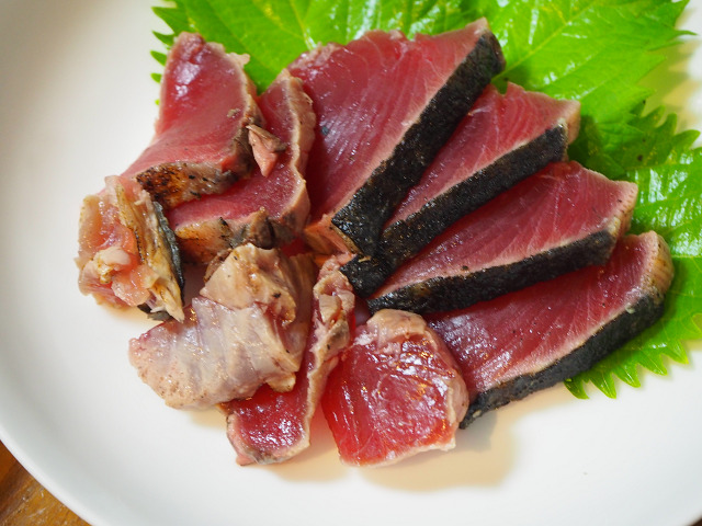 かなやん 500円 均一刺身です。鰹のたたきですが、いつものスパーのものとは全然違います。スーパーでは1/4身が398円くらいで売っていますが・・・そんなに量は要らないんですよね。芳ばしくて甘い。これが500円は値打ち品です。