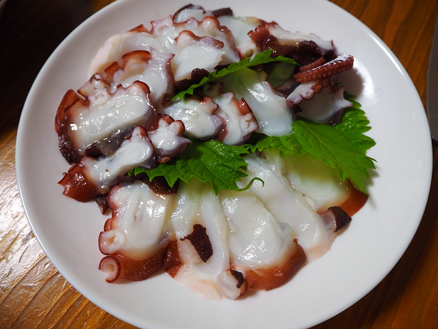 かなやんで蛸の足を買いました。結構いい値がしましたが、品物は抜群。切るだけで美味い刺身になりました。ツヤツヤのでシコシコ。この辺りの魚の目利きは最高です。次は、一緒に買った海老で、海老フライ作ろう。
