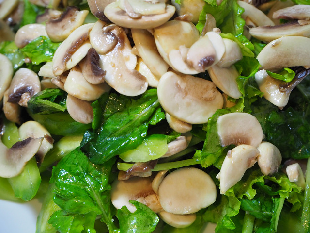 日本人はあまりしないようだけれど、マッシュルームサラダ。生のマッシュルームを食べるサラダです。