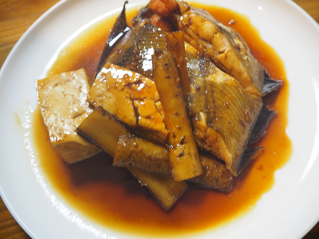 鰈の煮つけです。鰈は煮つけが一番美味しいですよ。付け合わせに焼き豆腐、牛蒡。