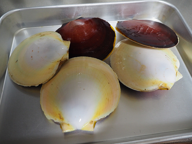 はい、今回は熊本産の希少種の貝「月日貝」を入手しました。月日貝と言うのは裏と表で全く色が違います。白い方を日(太陽)として黒い方を月と見るようですね。この貝は1個は刺身にしてみます。残りは塩ゆでが美味いとかなやんに聞きましたので、ここはそのまま塩ゆでにします。YouTubeではバター焼きと言うのもやっておられますね。さてさてどんな味かな。これから料理します。