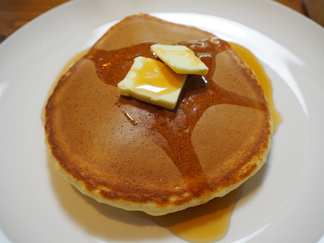 休日の朝食。ホットケーキ。洒落じゃないけれどホッとします。少し体を休めよう。最近、一週間が長いです。辛い。