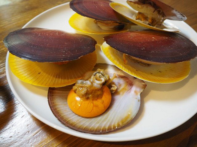 月日貝を塩ゆでにしました。これが一番ストレートに貝の美味さが感じられる料理法と聞きました。確かに、塩と水だけなので、貝の味そのものです。味は帆立の美味さを凝縮した感じで、こっちの方が旨みが感じられます。そして一つは刺身にしました。刺身は逆にあっさりしすぎて帆立の方が美味いかもしれませんな。京都ですから湯葉の刺身と一緒にいただきます。そして、ヒイカの焼きそば。なんでやねん。という組み合わせですが、美味いっす。麺はモチモチ、ヒイカはコリコリの食感です。ちなみにこの焼きそばは創味シャンタンの出している焼きそばです。ご馳走さまでした。