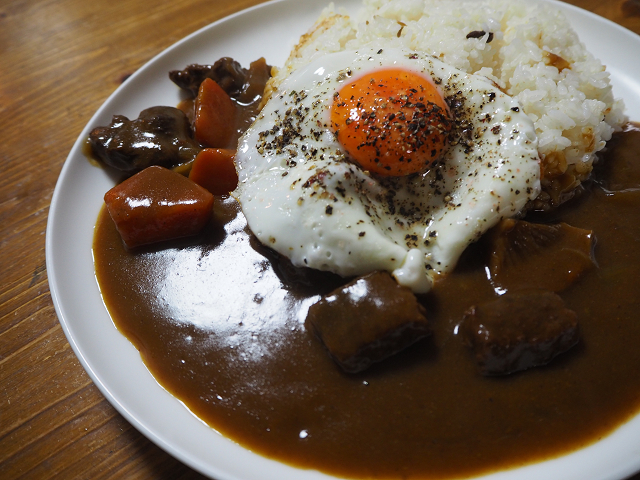 昨日作ったカレーが大量に残っているので、朝からカレーを頂きます。ビーフがたっぷり入ったカレーですよ。レベルは大辛のルーを使っていますが、全然辛くありません。息子はこの程度の辛さなので(普通の人なら普通に大辛)仕方ないので生の青唐辛子を炒めます。ゲホゲホと咳が出る辛さ。カプサイシンが飛び散るので部屋中が催涙弾を受けた感じです。ライスは昨日炊いたスパイスライス。クローブやカルダモン、クミンなどがホールで入っているご飯です。これだけで結構アジアンしていますよ。(笑)目玉焼きを添えて。みんなまだ寝ているので一人飯でした。