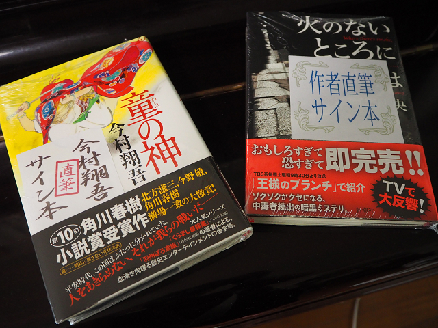 久々のサイン本です。オークションのサイン本などと言うものは全然信用が出来ません。大体、素人が入手困難な作家のサイン本を多彩にそろえているということ自体が嘘です。当方本についてよくわかりませんのでノークレームノーリターンで・・・解らん奴がなんで希少なサイン本山ほど持っとるねん。ボケるなよ。それをオークションにかけることもあり得ない。それはコレクターとしても変だからである。しかし、書店で売っているサイン本は信用できます。販促材料として書店に協力する作家さんは多いからね。東京八重洲の本やには凄い沢山のサイン本が売っていたなぁ・・・裏山。今回入手したのは 芦沢央『火のないところに煙は』今村翔吾『童神』