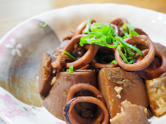 スルメイカと小芋を煮付けました。肝も入れて味を付けています。