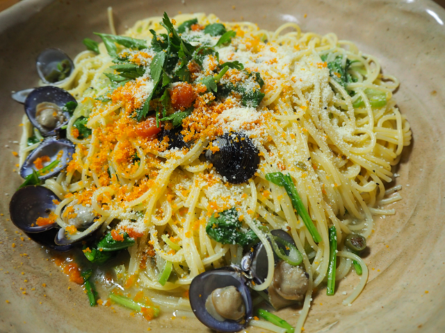 大きなシジミが手に入りました。アサリではよくあるペペロンチーノなんですが、今回はシジミで。シジミは独特の出汁が出ますから美味しいです。身も大きいので食べ応え充分。どうですか、シジミのペペロンチーノ。