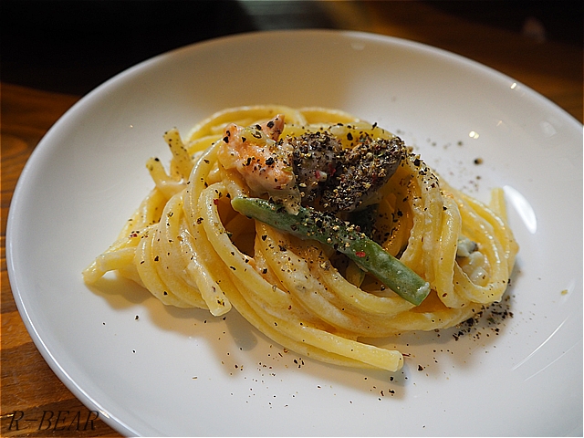 今回は新しい挑戦をしてみました。チキンの手羽先とモモ肉を使ってしっかりスープを取りました。鶏なべの要領ですね。そのスープを使ってリングイネのソースを作ります。鶏ダシがよく出ているので、一口食べてみると参鶏湯のような感じです。