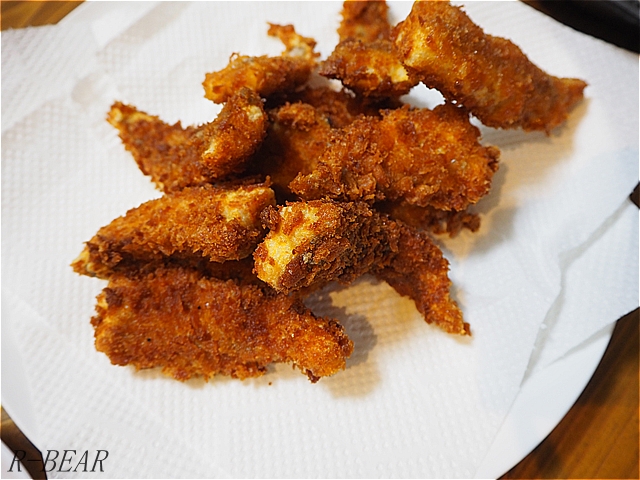 ホッケと言えば開きで干物というイメージがあるが、今日手に入れたのは生のホッケ。お勧めに従ってフライにしてみました。まず三枚におろさなければならないし、背骨はもちろん、血合い骨まで処理してフライにしてみました。最初は塩焼きでもいいかなと思っていたのですが。造ってみてビックリ。ホッケのフライは美味しすぎます。脂がとっても乗っているのでジューシーでホクホクのフライになりました。臭みもないしフィレオフィッシュの感じです。一尾から結構大きめの身が八切。二尾買ったので16切のフライななりました。ソースでいただきましたが、そのあとマヨネーズも付けました。これ、ビール好きにはたまらないアテになりますよね。