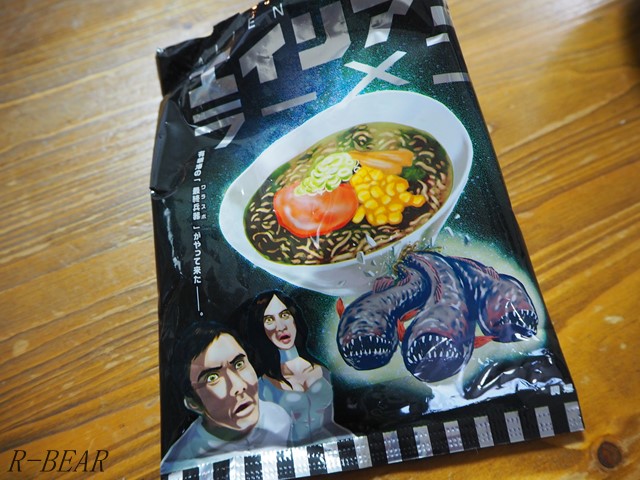 九州福岡のワラスボを用いたエイリアンラーメン。見た目が強烈でなんだこれはとおもいますね。別にこんなものが入っているわけではないですよ。ワラスボというのは福岡の有明辺りではそのまま刺身なんかで食べたりもするそうですが、かなり泥臭いということです。多くは内臓を取って乾燥させ、ダシにするらしいですね。このダシを使ったのがエイリアンラーメンですね。生だとこんな感じです。(笑)ワラスボは干潟の泥の中に住んでいるので、目が退化して黒い点のようになっています。夜に泥の中から出てきて食事をするというらしいです。まぁ、凶悪な顔をしていますが性格はそんなに狂暴というわけではないようです。(笑)ラーメンを作ってみました。緑色が凶悪です(笑)これはクチナシの着色料を使っているからだそうで、味はくせのない塩味です。びっくりさせる割には普通のラーメンという感じですね。
