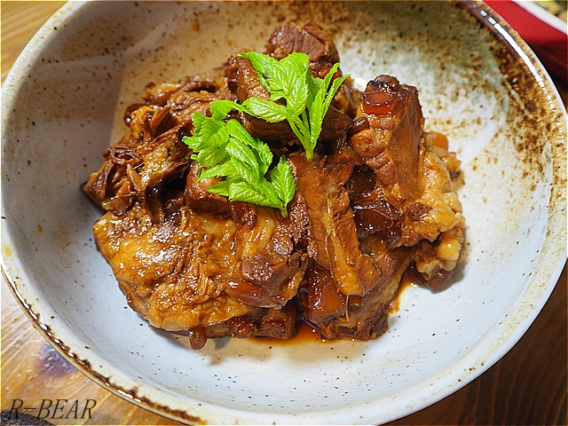 豚の軟骨を煮てみました。軟骨は肉としてて安いですが、しっかり料理すると美味しいですよ。10時間くらいゆっくり煮つけると軟骨がトロトロになって最高です。軟骨が二本肉を貫いていますが、歯で簡単に噛み切れ、もっちりとした歯触りです。料理は時間と手間がかかるけれど、それを厭わなければ美味しいものが作れますね。