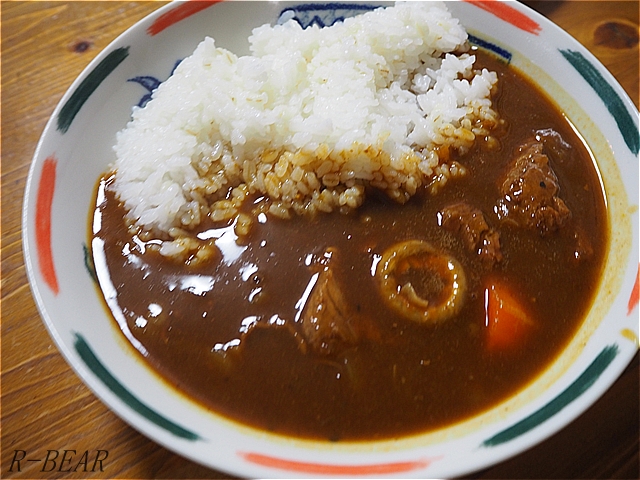 一日目のすじカレーだ。ちょっとシャバっとした感じ。すじはしっかり一日前から煮ているので柔らかい。二日目のすじカレー。自由軒リスペクト。ライスは押し麦の入った麦ごはん。