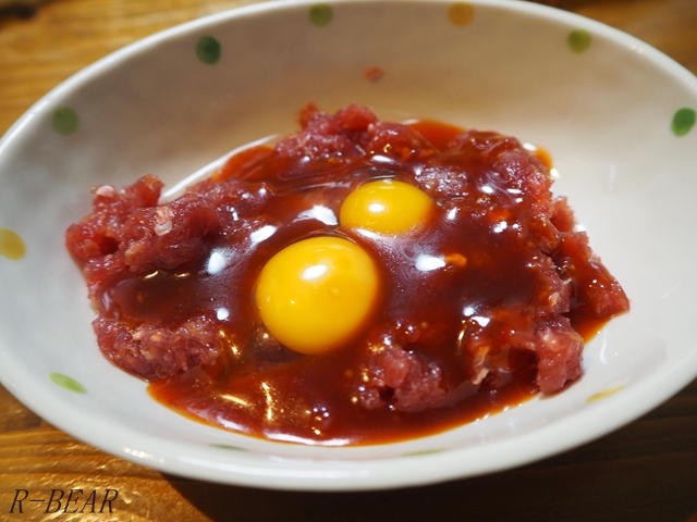 本日の一品。鯨のユッケ。いい味出しています。トンボ(トリ貝)も一緒に。足を開かず、肝まで入っているのでいつものトリ貝とは違った味わいです。