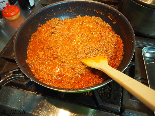 ボロネーゼは結構手間がかかります。単にミンチで作ると言うのではないですぞ。フードプロセッサーで微塵にした野菜をたっぷりとミンチをしっかり煮つけて作ります。手間暇かかるので作るとは大量に作成します。ホイ、出来ました。ボロネーゼです。