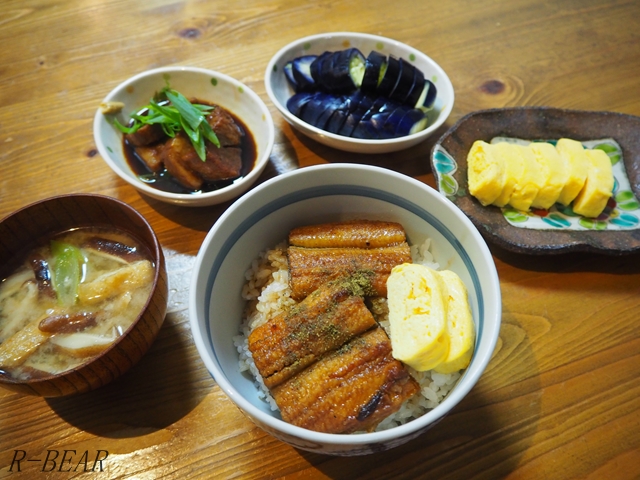 今日は誕生日でございました。SNSやFacebookでたくさんのメッセージありがとうございました。さて、今日の一品ですがこんな感じです。鰻が好きなので、鰻をベースにしてみました。ダシ巻、これは逢坂山の「かねよ」のスタイルの錦糸丼です。細く切らないのは旅人を待たせない時間短縮らしいです。これはこれでボリュームがあって美味しい。泉州の水ナス。何もつけなくても切っただけで美味しい漬物です。そしてシンプルにお揚げの味噌汁。ダシを普通より贅沢にとっています。これが旨い。先日作った煮豚も付けています。