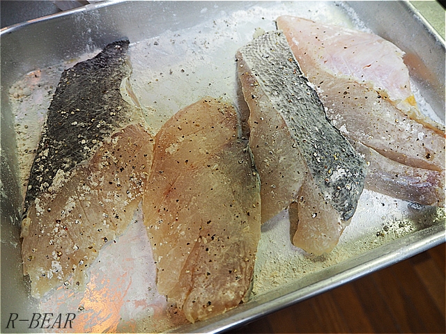 かなやんからスズキの大きな切り身を手に入れました。軽く塩胡椒して、小麦粉を振っています。バット一杯になるくらいの大きな切り身です。調理中は画像が撮りにくいので完成形。付け合わせにトマト、アボカドをプラスしています。上にはオリーブオイルに香りを移すために使ったニンニク(捨てるの勿体ない)と唐辛子をトッピング。魚はとても美味しいですね。歳をとったか肉より魚が美味しい毎日です。良いもの買うとそれなりの値段しちゃうけれどね。
