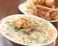 ラーメンは噂通りの激旨。豚骨ベースのスープに香ばしさがプラスして食欲をそそる。昼時だったこともあってかなりの行列。とは言うものの店内が広くなっているから20分ほど待って入店。