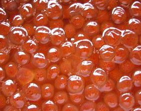 溢れんばかりの筋子・・・濃いオレンジ色に輝いている。