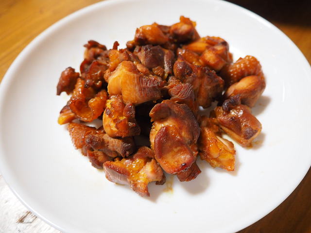 かたい肉ですから少々小さめにカットしないと食べられませんよ。