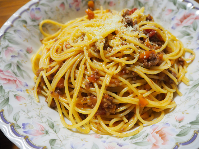 以前、作って冷凍して置いたミートソースを解凍して作りました。
