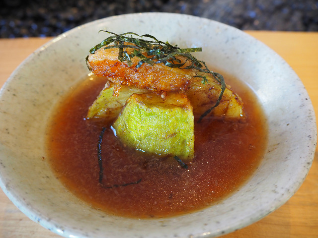上に載っているかぼちゃの揚げ物もカリッとして中はホクホク。