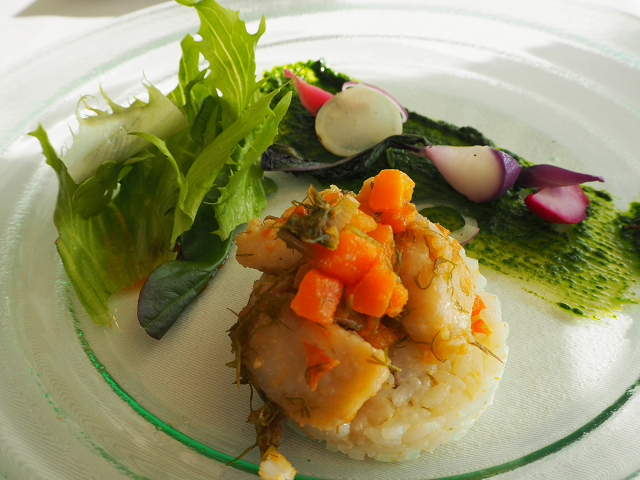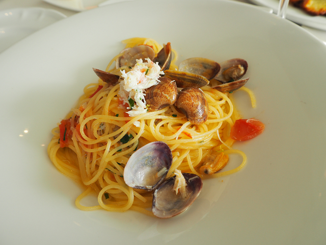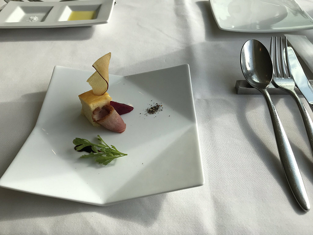 景色抜群のホテルのレストランでイタリアンのコースを頂きました。