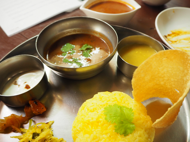 アーンドラマトンカレーとチキンカレーの追加のルー200円。