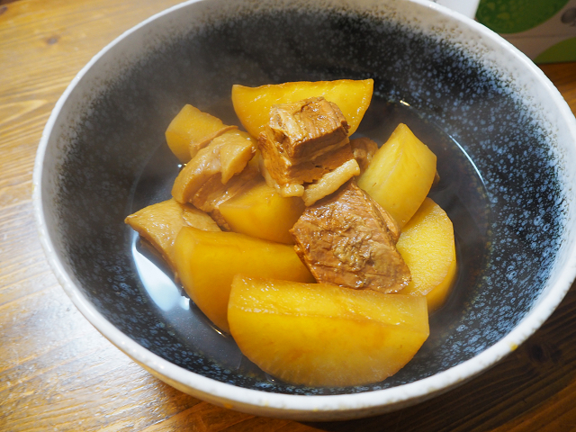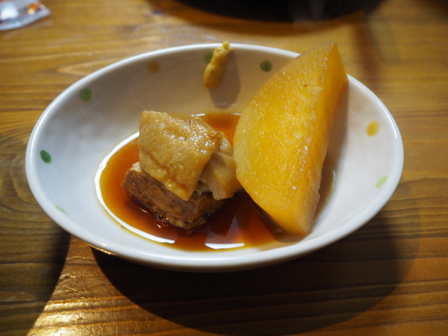 翌日は下煮した大根とあわせて出汁の中に入れて蒸し器に。