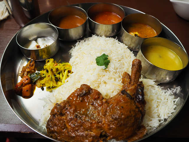 ライスをバスマティーにチェンジして量をは半分くらいにしていますので、やたらカレーのほうが多くてバランス的になんなんですが、ハイデラバードメルモチキンです。