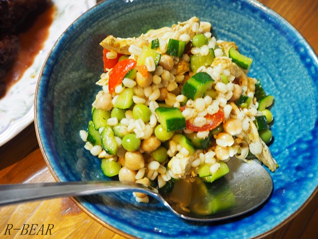 豆と大麦のサラダだよ。