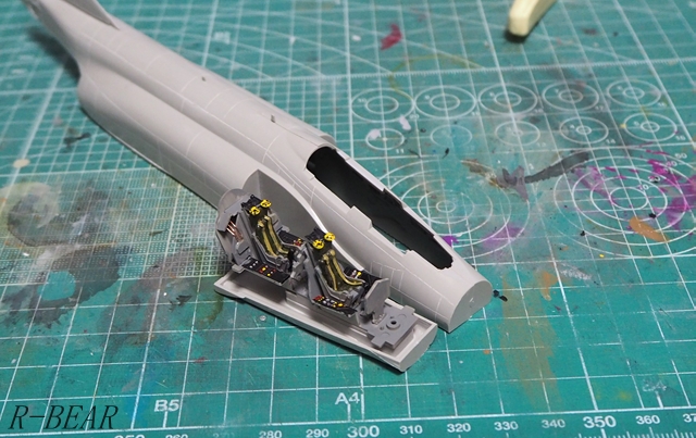 座席の後ろに壁がなく、射出シートのレールもなかったのでブラ板とプラ棒で作ってみました。
