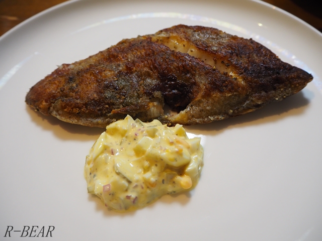 大きすぎてフライパンにすら入らないので、半分に切ってムニエルにしました。