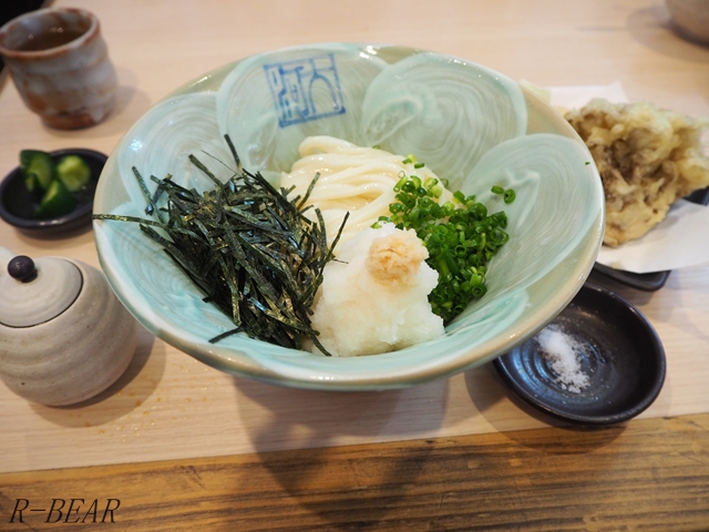 海老、ちくわ、かしわ、大葉の天ぷらをトッピングした大河ぶっかけです。