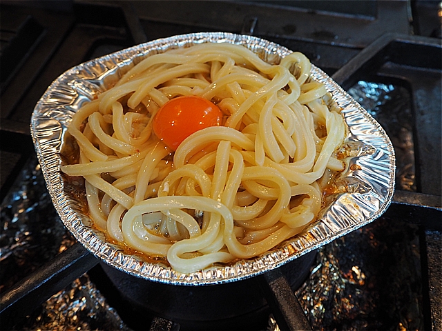 ここに冷凍うどん。(冷凍うどんはレンジで加熱してから入れています)