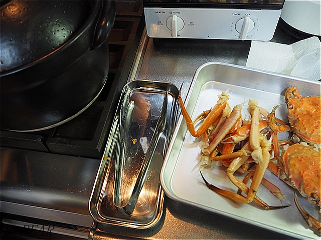 ご飯が炊き終わったら蟹はいったん外に出して解体作業に入ります。