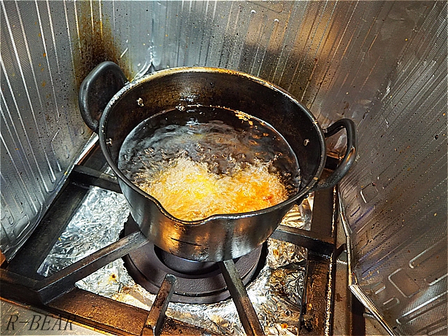 様子を見て揚げています。
