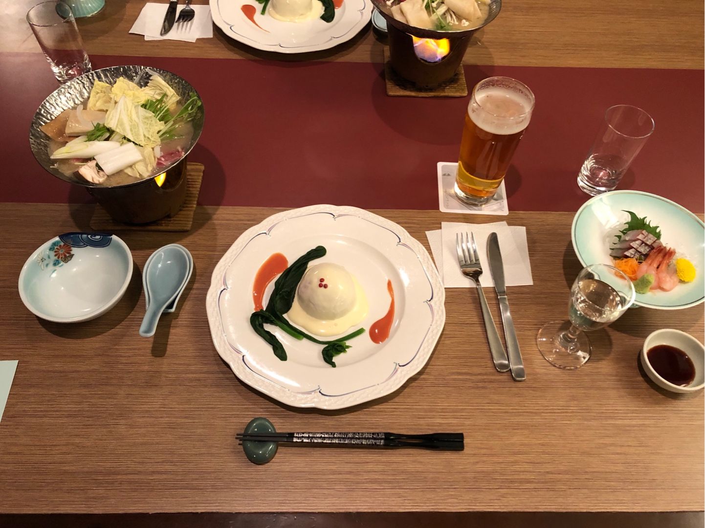 11日の夕食。食前酒はワインです。生ビールも飲みました。兜煮まであってかなりなボリュームでした。
