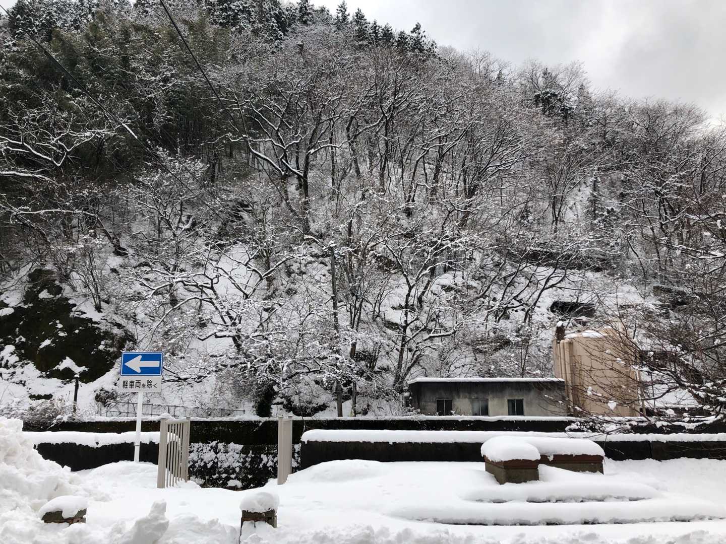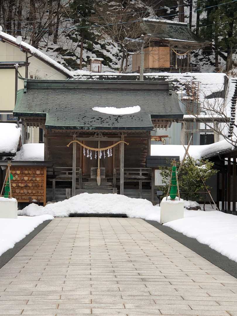 ということで賽銭はあげず、二礼、二柏手、一礼でお許し願い神社を後にし、温海川沿いの道を戻りましたが、こちらの道はちょっと雪で歩きにくかったです。