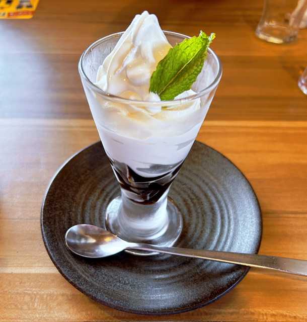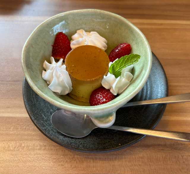 メインの丼を、ココアはローストビーフ丼、オトタマは海鮮丼を選び、麺は二人とも冷たいおそばで、デザートはココアがプリンアラモードで、オトタマは黒糖ゼリーソフトですが、二つともココアがいただきなのは至極当然のこと!(爆)