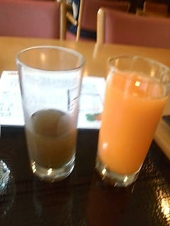 人参ジュースはリンゴ・レモンが混ざっててスッキリ飲みやすい('-^*)