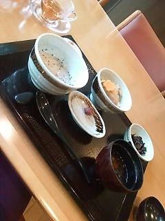 キクラゲの佃煮、蓮根の巾着、海藻のお味噌汁・・・