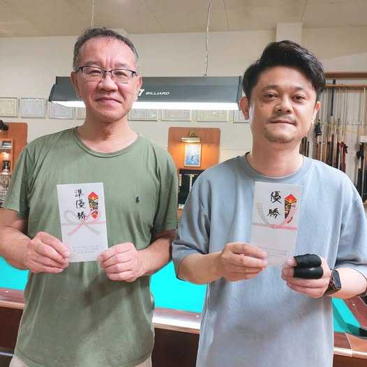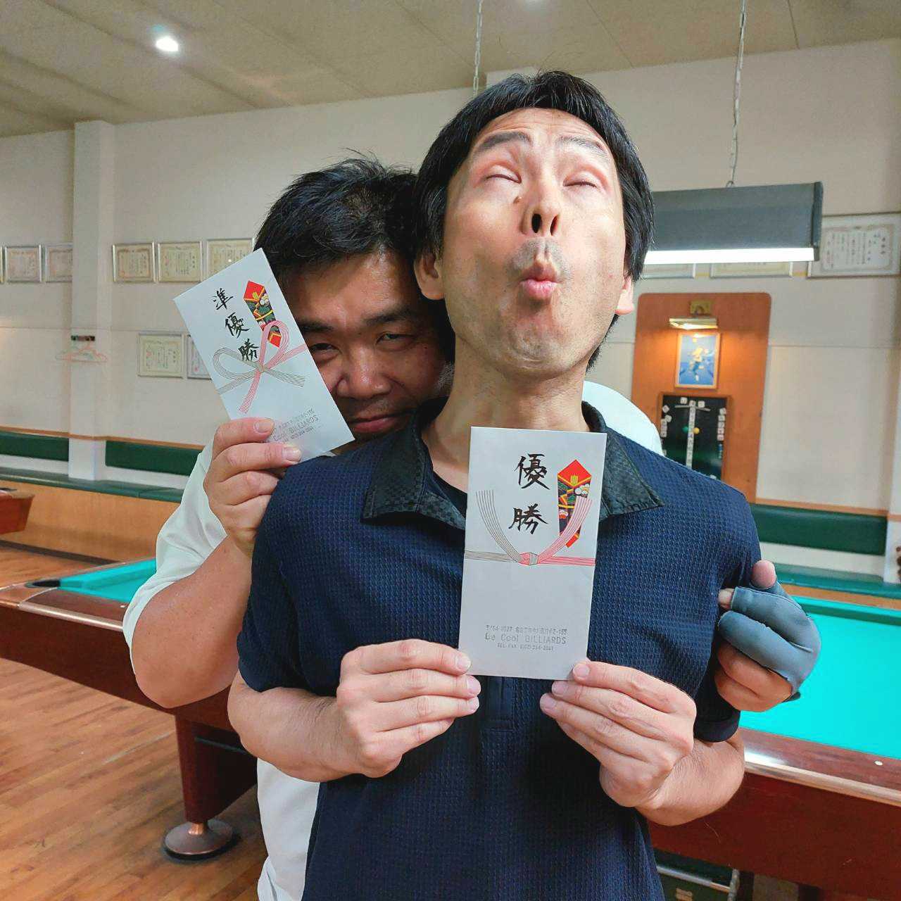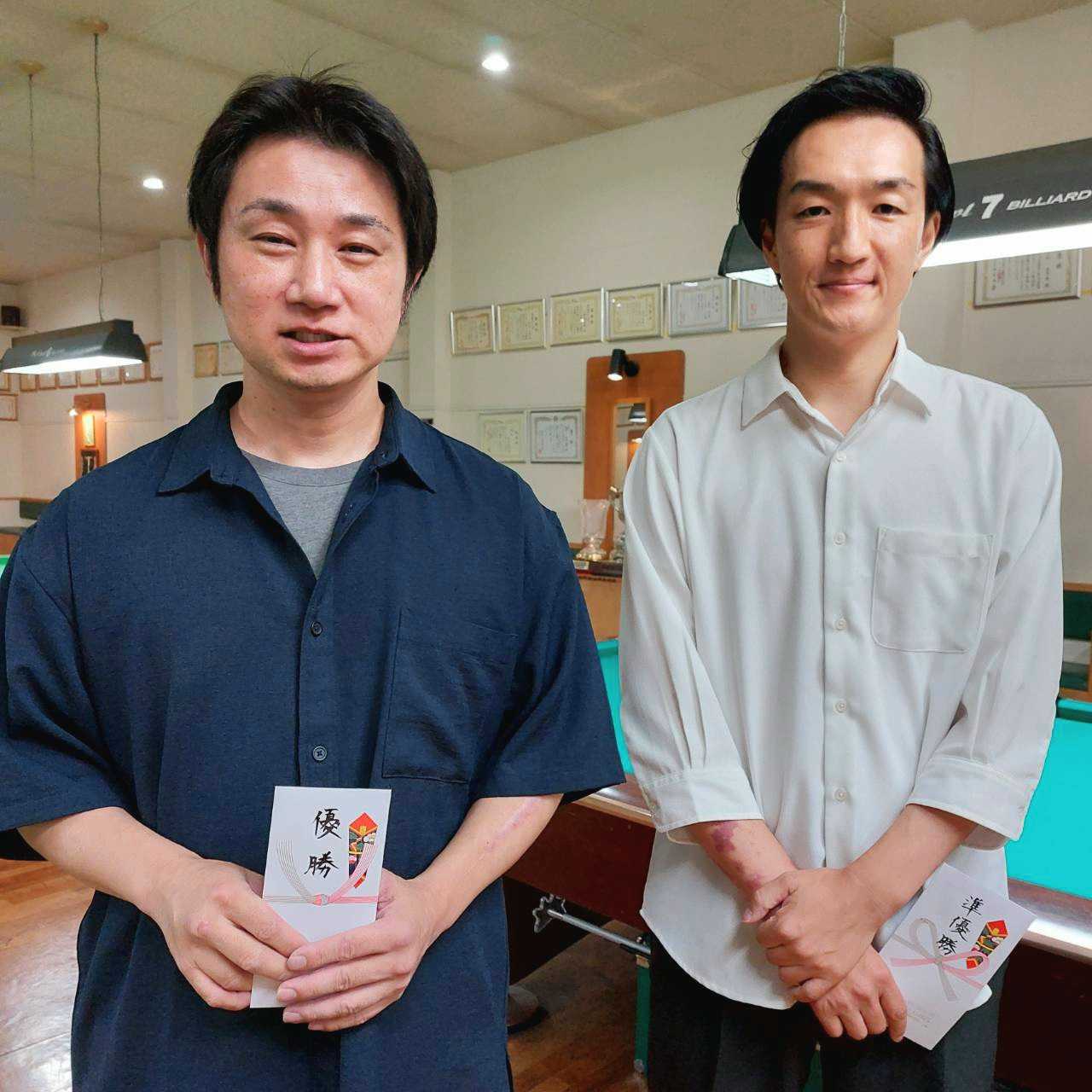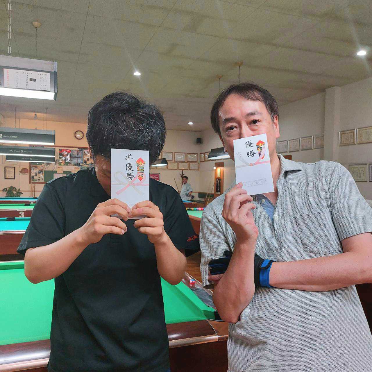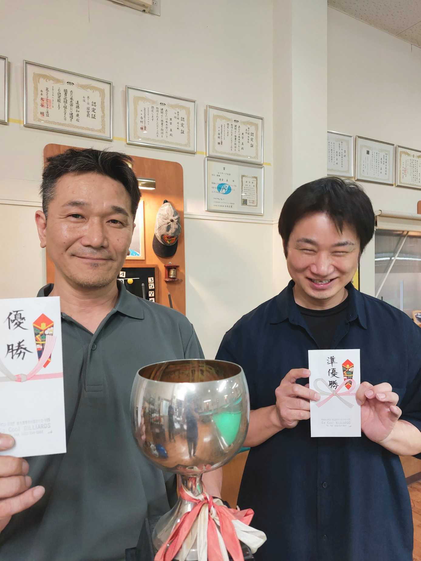 6月13日(金)に行われたウィークリーの結果です。優勝:小寺さん(A1・写真右)準優勝:黒宮(健)さん(A1・写真右)優勝は小寺さんでした♪おめでとうございます(*´▽`*)次回のウィークリーは6/27(金)20:00~です。6/20 (金) 20:00~月例会(10ボール)6/21 14:30~BCカップを開催します。みなさまの参加をお待ちしてます♪(※開催内容や日時は急に変更する場合があります。直前の告知をご覧ください。)
