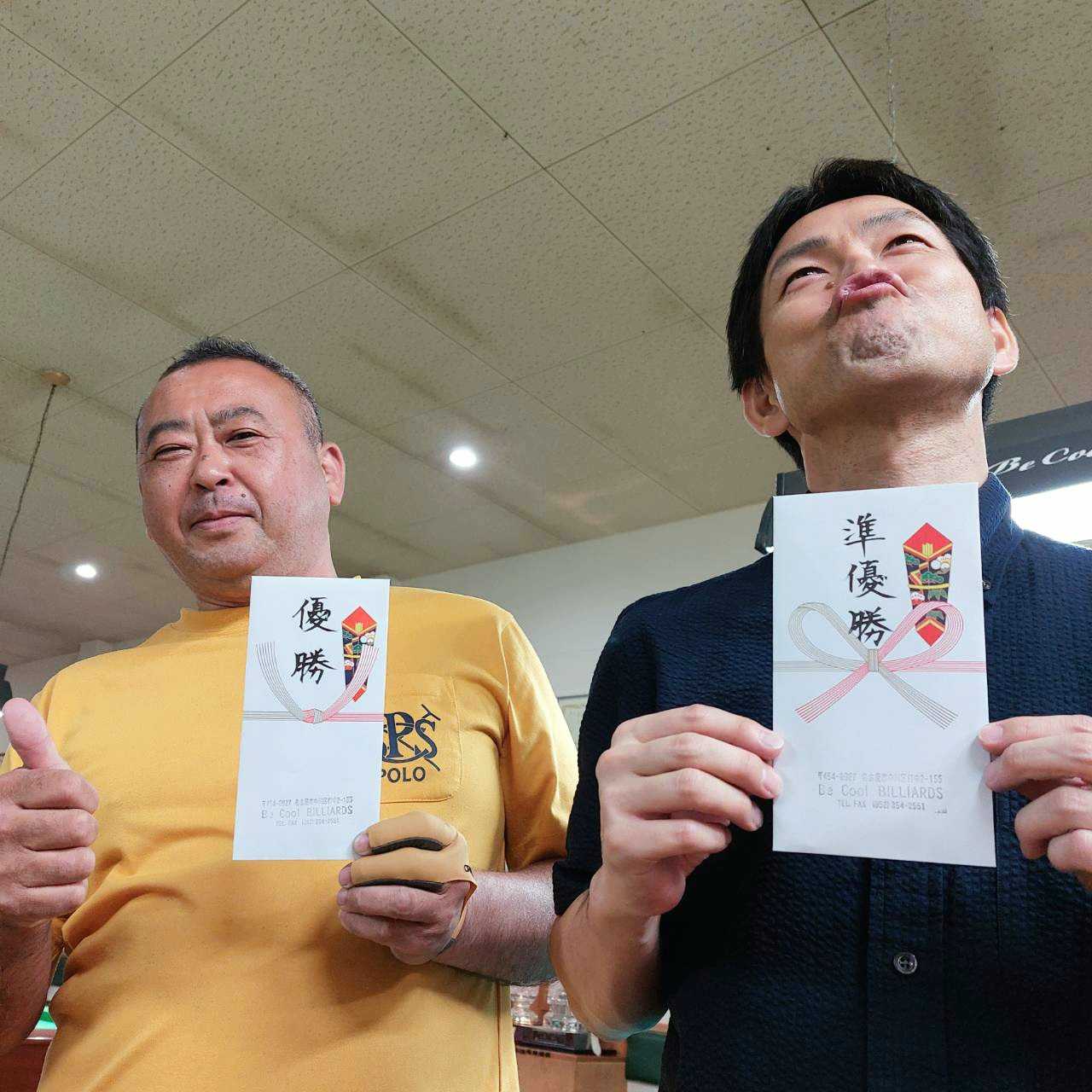 11月7日(金)に行われたウィークリーの結果です。優勝:横井さん(A2・写真右)準優勝:塩崎さん(A2・写真左)優勝は横井さんでした!おめでとうございます♪次回は11/14(金)20:00~です。みなさまの参加をお待ちしてます♪(※開催内容や日時は急に変更する場合があります。直前の告知をご覧ください)【11月予定表】◎11/23(日)は他店との交流戦のため、18時ごろまで貸し切りです。🎱月曜定休🎱毎週金曜日20:00~ウィークリー開催! (第3を除く) 9ボール・ハンデ戦 エントリーフィー¥1500🎱毎月第3金曜日20:00~月例会開催! 10ボール・ハンデ戦 エントリーフィー¥2500🎱毎月第3土曜日14:30~BCカップ開催! 9ボール・ハンデ戦 エントリーフィー¥2000※台風・大雪など天候により中止や休業する場合があります。当HP・SNS等でお知らせいたします。↓ぜひチェックしてください♪↓ビークールビリヤードFacebookBecoolbilliards instagram
