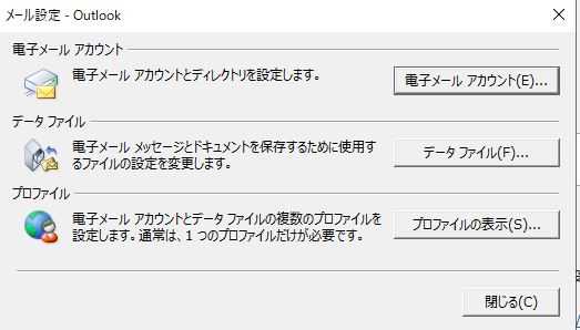 ファイル>アカウント設定>アカウント設定Aと進み