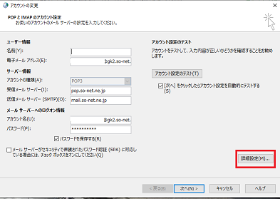 ポート番号、暗号化設定を変更する場合は右下 「詳細設定」 をクリックします。
