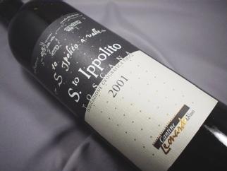今週の一本はほとんど一般には出回らない(レストラン関係に流れているようです)、レオナルドダヴィンチのサント イポリートです、価格的にはそんなに高いワインじゃ有りませんが、店で飲むと5000円から7000円て所でしょうか。アフィリなし こうやって書くと高いじゃないか、あんたほど金持ちじゃない・・・とか聞こえてきそうですが、ネットで買うと3000円未満のワインで、ワインとしては中位のレベルです。(もっとも楽天で検索しても出てきませんが・・・結構ディープなイタリアワインです) アルコールって店に出すと高くなるのよ・・・中には良心的な店もありますが、繁華街にある店は先の値段より下ということはまず有りません。 日本人がワインを余り飲まない理由は居酒屋においてあるワインのレベルの低さにあると思っています。 あのワインを飲んでワインが好きになるということはまず有りえない事だと思っていますし、あのワインが美味しいという人は、余り料理にこだわらない方ではないでしょうか。 特に居酒屋の飲み放題で提供されるワインは、市販価格で一本300円から400円程度のワインがほとんどで、ワインと呼ぶにはちょっと・・・と思われる銘柄が使われています。 名前をあげると、ポレール、美味しいワイン、それと名も知らぬ3リットル位の紙パックに入ったボックスワイン。こういうワインをデキャンターに移して提供してくれます。 これ、ビールより安い。 アルコール度は高いくせにビールより安いワインですから、店は大喜び。私は飲み放題ではまずビールしか飲みません。 ビールと書いてあって発泡酒が出てきたら文句を言います。 こんなワインで飲み放題2000円も取られたら6本以上一人で飲まないとペイできません、くれぐれもご注意。さて、話がそれて本題。 今日あけたサントイポリートは2本目です。 以前飲んだ時の印象より薄く感じました。が、口当たりはまろやかで香りも申し分なし。 料理と飲むにはもってこいの一本といえるでしょう。 シラーとメルローを丁度半分づつの比率のブレンド、ステンレスタンクと思いますが変にバリックにするよりこの方が料理には合わせやすいと思います。 フルボディと呼ぶにはちと足りず、エレガントというにはタンニンが勝ってて雑身もある、同じ作り手のサンジオ(こっちはサンジョベ)の荒々しい作り方をそのまま引き継いだ野性味溢れるワインです。 料理で言うと田舎料理でしょうか、煮物を作りながらアクを取らず、ぶつ切りの肉と野菜を炒め、ぶち込みシチューにした、みたいな・・・・ イタリアの郷土料理ってこういうのが多そうな気がしますが、(マリネして焼いただけとか)そういう料理にはこのワインでしょう。 色も濃い割には粘りはそれほどでもない、やっぱり飲食ワインです。 是非パスタや、肉料理、チーズのたっぷりかかった野菜系のグラタンと合わせてみてください、料理が何ぼでも入ります。